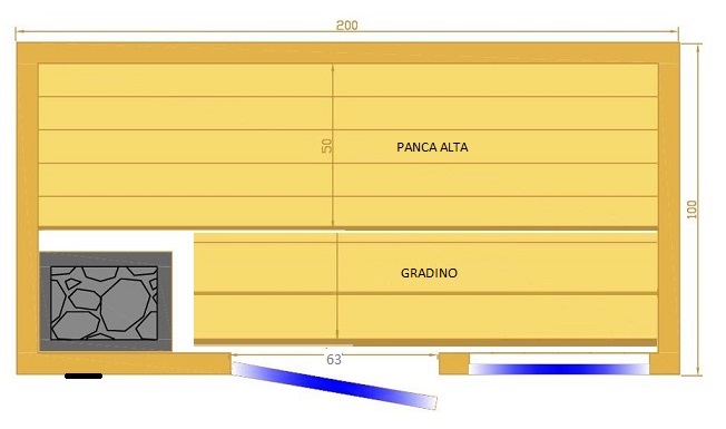 Sauna finlandese Mod. HARVI (basso consumo) in legno di Abete – 200×100×200h