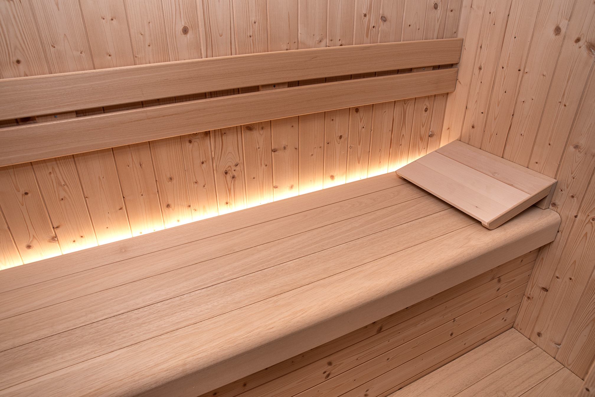 Panche in legno massello atermico di Ayous privo di nodi, di grosso spessore.